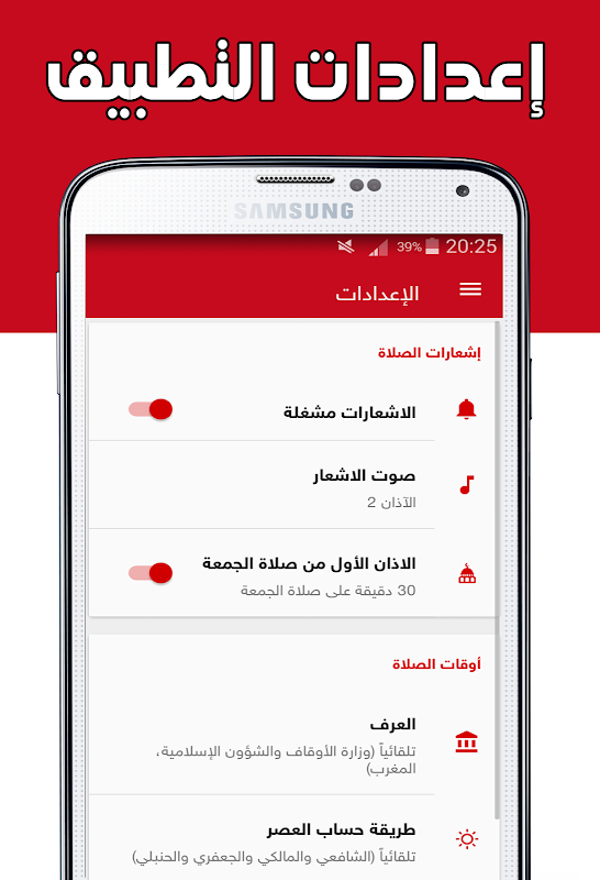 * إعدادات أوقات الصلاة: