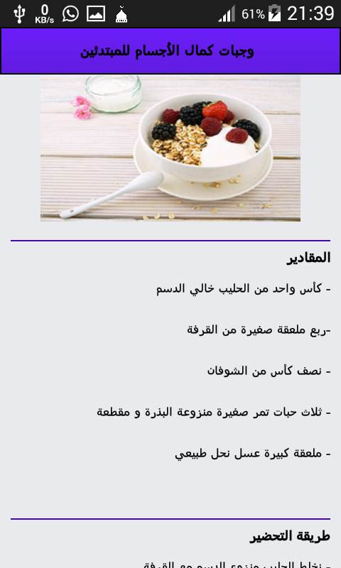 ويعطيكم تطبيق أهم وجبات لاعبي كمال الأجسام طريقة التحضير الخاصة بكل وجبة حتى تحصلو على جسم مثالي و جذاب في وقت قصير.