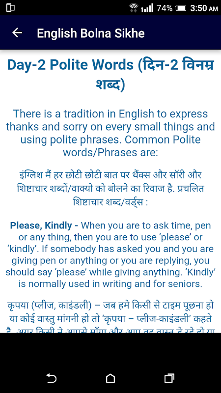 * Hindi to angreji application is an easy way to gain confidence. So, here is your opportunity to learn english speaking and improve your spoken english with this offline app.