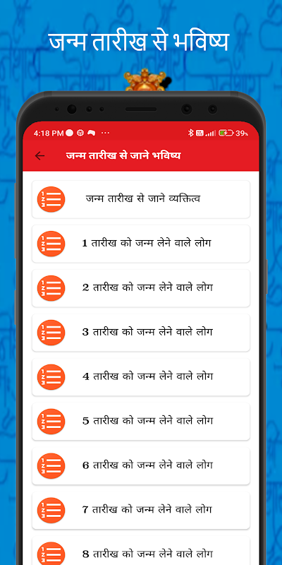アプリのすべてのコンテンツは、ヒンディー語です。