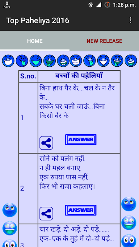 You can use this app to have access to number of riddles (Paheliyan) and amaze your friends with funny anf mind twisting riddles.