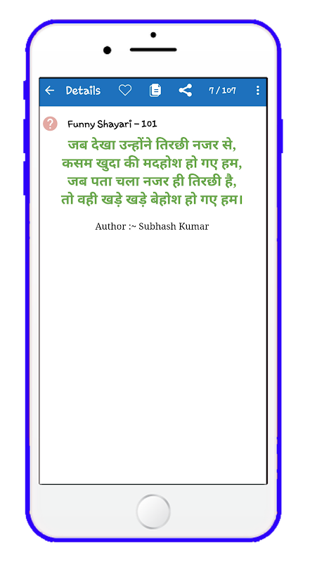 In Hindi me shayari application you will get to see and read more than one crore shayari, as well as this application has been made keeping in mind the youth, in this application you will get to read some such shayari like romantic shayari funny shayari sad shayari Miss you shayari love shayari bewafa shayari friend shayari girlfriend shayari boyfriend shayari etc.