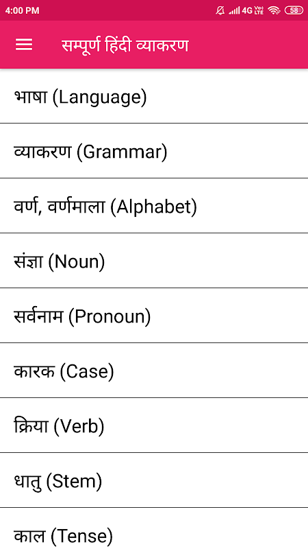 Hindi Grammar app Content