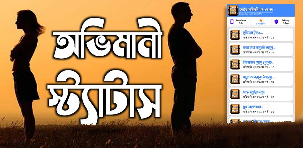 মানুষেরজীবনমানেইদুক্ষ-কষ়টমান-অ আরমানঅভিমানসবসময়প্রিয়মানুষবাকাছেরমানুষেরসাথেইহয়েথাকে。 অভিমানিএসএমএসঅ্যাপটিবাস্তবজীবনেরঅভিমাননিয়েতৈরিকরা。 অভিমানমুলতবুকেজমেথাকানাবলাদুঃখকস্টথেকেইজন্মনেয়。 কাছেরমানুষেরঅভিমানভাঙ্গানোরমেসেজএবংপ্রিয়মানুষেরউপরঅভিমানকরারএসএমএসওরয়েছেআমাদেরএইঅভিমানিএসএমএসঅ্যাপটিতে。 এইঅভিমানিএসএমএসগুলোথেকেআপনিবিভিন্নসোসালমিডিয়াতেঅভিমানীস্ট্যাটাসপোস্টকরতেপারবেনএবংঅভিমানীব্যক্তিকেউদ্দেশ্যকরেমেসেজদিতেপারবেন。
