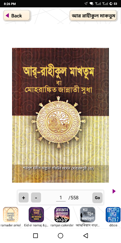 আররাহীকুলমাখতূম(Ar-Raheeq Al-Makhtum):একটিঅনবদ্যস নবীকারীমসাল্লাল্লাহুআলাইহিওয়াসাল্লামেরসীরাতপর্যালোচনায়、সীরাতেরঘটনামালারসুসংহতওমনোজ্ঞউপস্থাপনায়বক্ষ্যমাণগ্রন্থটিসত্যিইএকনজিরবিহীনরচনা。 আলকুরআনুলকারীম、হাদীসেনববীওবিশুদ্ধআছারএবংঐতিহাসিকবর্ণনারনির্যাসবেরকরেপ্রাজ্ঞলেখকতাঁরএবইটিসুবিন্যস্তকরেছেন。 সীরাতবিষয়েলিখিতপ্রাচীনগ্রন্থাদিথেকেওতিনিবহুমণিমাণিক্যউপস্থাপনকরেছেনযাত্রুটিরহিতসংক্ষিপ্ততায়、সুখপাঠ্যদীর্ঘআলোচনায়、অত্যন্তচমৎকারভাবেউপস্থাপনকরেছেন。 সেহিসেবে、বইটি、বন্ধ্যাত্বেরএইআধুনিকযুগেপূর্ণাঙ্গওপর্যাপ্ততথ্যসমৃদ্ধহয়েপাঠকেরসামনেহাজিরহয়েছে。 বইটিনির্ভরযোগ্যতারসর্বোচ্চমানদণ্ডরক্ষাকরেমহানবীসাল্লাল্লাহুআলাইহিওয়াসাল্লামেরপবিত্রসীরাতউপস্থাপনকরেছে、যাপাঠকেরসামনেউজ্জ্বলকরেদেয়সীরাতুলমুস্তাকীমেরনিশানাসমগ্র。 দেখিয়েদেয়সীরাতুন্নাবীপাঠেরসসঠসসঠ এসবকারণেরাবেতায়েআলামেইসলামীকর্তৃকসীরাতুন্নবীগ্রন্থ-প্রতিযোগিতায়যুক্তিযুক্তভাবেইবইটিপ্রথমস্থানঅধিকারকরে1২96হি.সালে。