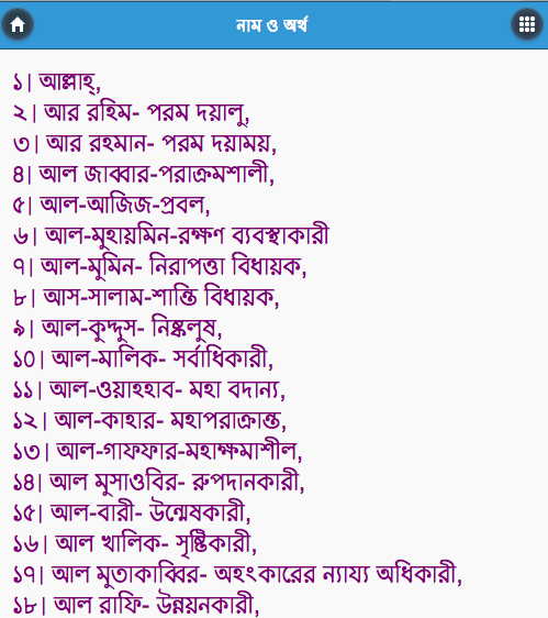 এখানেআল্লাহরনাম、অর্থওএরফজিলতসম্পর্কেবর্ননাকরাহয়েছে。