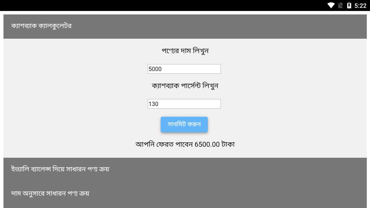 ইভ্যালি তে নানা রকম অফার মাঝে মাঝেই আসে যার মধ্যে ক্যাশব্যাক অফার আমাদের মাঝে খুবি জনপ্রিয়। কিন্তু অফার গুলি আলাদা আলাদা পার্সেন্টেজ এ থাকায় কত টাকা আসবে এবং কত টাকার প্রোডাক্ট কিনতে পারবেন বর্তমান কন্ডিশন এ তা নিয়ে বারবার ক্যাল্কুলেটর চাপতে বিরক্ত লাগে এই জন্য আমি এই সফটওয়ার টা বানিয়েছি যেন আমরা সহজেই হিসাবগুলি করে ফেলতে পারি। ইভ্যালি ক্যাশব্যাক ক্যালকুলেটর [ Evaly Cashback Calculator ]এই সফটওয়ার দিয়ে আপনি ক্যাশব্যাক দিয়ে কত দামের প্রোডাক্ট কিনতে পারবেন তাও সহজেই হিসাব করে ফেলতে পারবেন। এছাড়াও ডিস্কাউন্ট অফারে কত টাকা সেভ হচ্ছে তাও বের করতে পারবেন। যদিও হিসাব গুলি আপনি সাধারন ক্যাল্কুলেটর এ করতে পারবেন তার পর ও এমন একটা সফটওয়ার আপনার হিসাব গুলি দ্রুত করতে সহায়তা করবে আর আপনার দৈনন্দিন জীবন কে সহজ করে দিবে।