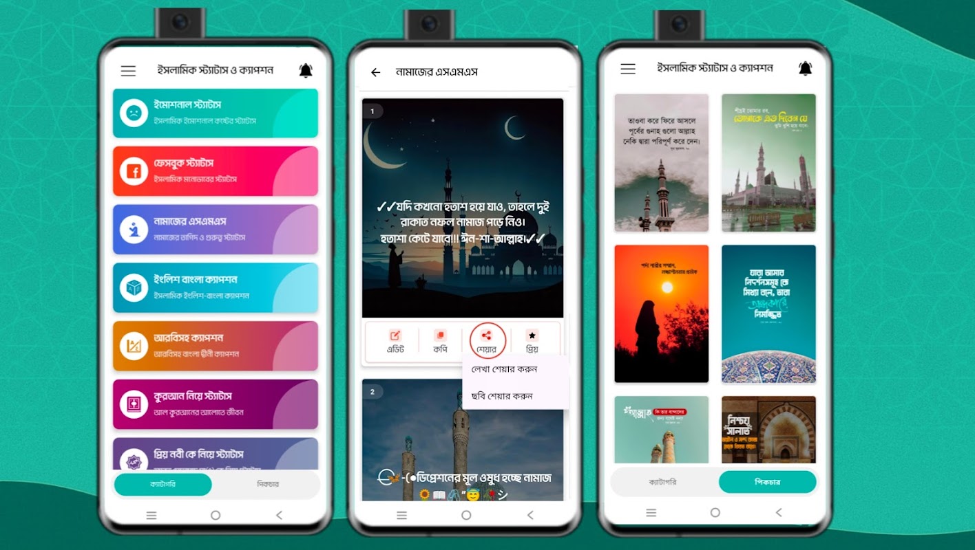 このアプリには、心に響く小さなイスラムのキャプション、画像、そして様々なステータスカテゴリーの様々な機能が含まれています。簡単にコピー、共有、編集して自分のコンテンツとして楽しむことができます。毎日の朝、晩、ラマダン、ジュマ、ナマズ、そして愛する預言者(PBUH)の祈りは、心に響く文章です。また、英語とベンガル語のキャプション、イスラムのプロフィール、ソーシャルメディアで使えるスタイリッシュなステータスも用意されています。このアプリは、ユーザーの感情、信仰、そして精神的な力に焦点を当て、シンプルで使いやすく、使いやすいように設計されています。