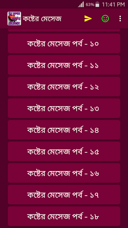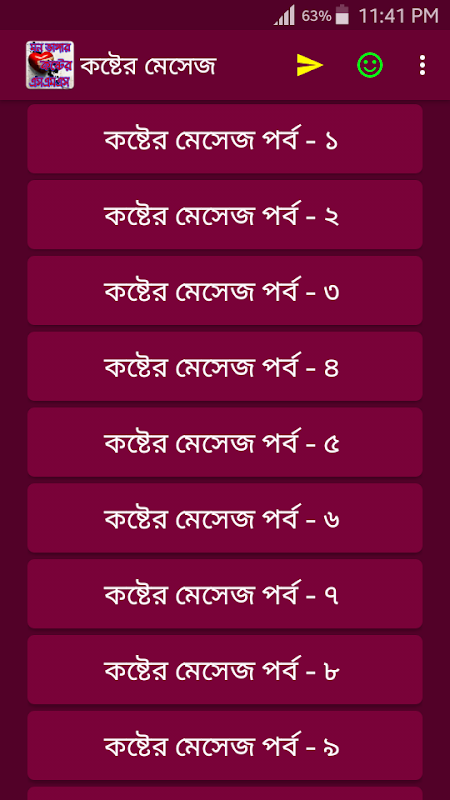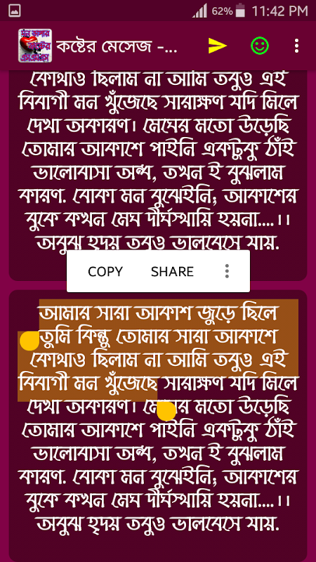 আনন্দ হাসি ফুর্তি আমোদ খুশি এগুলো যেমন জীবনের একটা অনুভুতি, দুঃখ কষ্ট বেদনা মন খারাপ এগুলোও ঠিক একই। মানব জীবনের সাথে ওতপ্রোভাবে জড়িত। দুঃখ হলো এক প্রকার মানসিক অনুভূতি যা এক সময় কষ্টে রূপান্তরিত হয়, মানুষের জীবনের কষ্ট বা দুঃখের শত কোটি কারণ থাকে কিন্তু দুঃখের কষ্টের যে বেদনা তা প্রাই সকলের ক্ষেত্রেই এক। সেটা হলো না পাওয়া।এই অ্যাপের মাধ্যমে দুঃখ কষ্ট কে ঘিরে হৃদয়কে ছুয়ে যাওয়া কিছু বাংলা কষ্টের এসএমএস (bangla koster sms) কবিতা দেওয়া হলো। যা আপনার ভালো লাগবে আশা করি।আর মানুষ যখন একা থাকে তখন কষ্টের গান, কষ্টের কবিতা,কষ্টের ছন্দ,কষ্টের গল্প,কষ্টের এসএমএস জীবনের সাথে জরিয়ে যায়। আবেগী ভালোবাসা,অপরাধী প্রেম ভালোবাসা হৃদয় ভাঙ্গা কষ্ট গুলো এস এম এস এর মাধ্যমে পড়ে কিছুটা শান্তি পাওয়া যায়।কিন্তু কখনও ইমোশনাল রোমান্টিক ভাব না আসলে কষ্টের কবিতা গুলো পড়ুন।মন খারাপ sms মাধ্যমে আপনি আপনার লুকানো কষ্ট গুলি বের করে দিন আপনি বিরহের sms গুলো আপনার মনকে শান্তি দিতে পারে কষ্টের কথা গুলো আরেকজন কে বলুন তাহলে হালকা হতে পারবেন আপনি বাংলা এস এম এস মাধ্যমেও এটা করতে পারেন খুব সহজেই বাংলা কষ্টের এসএমএস তো সবাই পরেছে এবং পরবে আপনার নষ্ট জীবনের কষ্টের এস এম এস সমুহ যদি কারেন তাহলেই বুঝবেন sms কান্নার এসএমএস সহ আরও অনেক কিছুই পাবেন এখানে হৃদয়ের কষ্ট গুলো জানতে এবং জানাতে পড়ুন হৃদয়ের কষ্টের এসএমএস অ্যাপের মধ্য দেওয়া আছে হৃদয় ভাঙ্গা এসএমএস যা আপনার কষ্ট কে দুর করতেও পারে কষ্টের এসএমএস ২০২০ এসএমএস গুলে নতুন এসেছে আজই পড়ুন ইমোশনাল কষ্টের এস এম এস এবং তা থেকে বিরহ গুলো ভুলে জান বিরহের sms ভালবাসার কষ্টের চিঠি গুলো কান্না ভেজা আপনাকে সাহায্য করবে কষ্টের কথা বিরহের কবিতা গুলো তাহলে পড়ুন sad poems গুলো পড়তে মানে বিরহের কবিতা অবশ্যই পরে নিতে পারেন।
