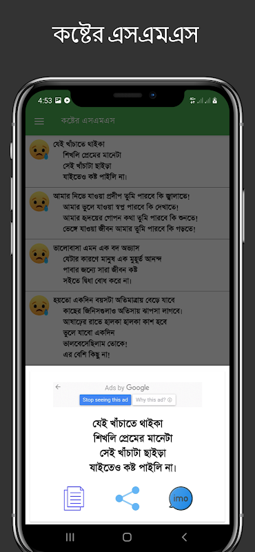 আমাদের অ্যাপসটি মূলত কষ্টের এসএমএস নিয়ে সাজানো হয়েছে।