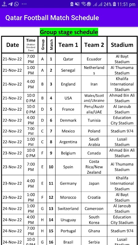 • Qatar World Cup Schedule 2022 スクリーンショット 2