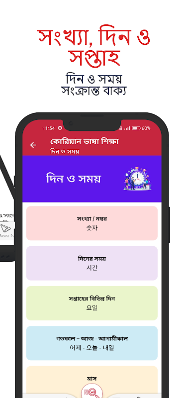 অডিওসহ এই অ্যাপে সহজে শিখুন কোরিয়ান ভাষা। বর্ণমালা, শব্দভাণ্ডার এবং বাক্য গঠন।
