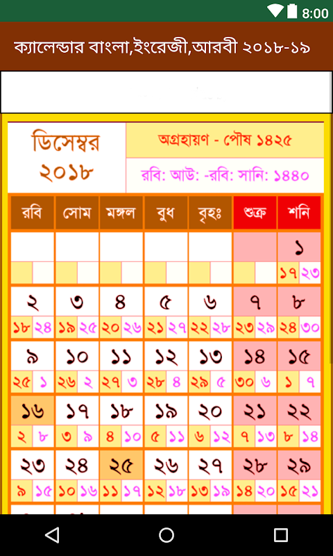 এইইংরেজি২018সালেরক্যালেন্ডারアプリケーションএরভিতরেরয়েছেবাংলাওআরবিবছর。