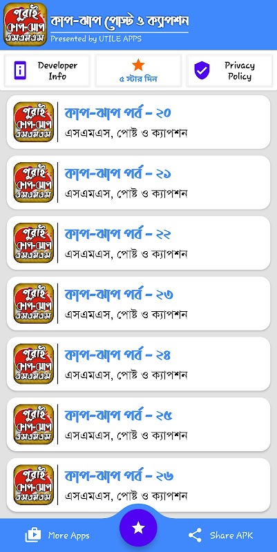人々はただ娯楽を愛し、異なる人々は異なる娯楽を持っています。 Chapabajiブランドの極端な笑いFaizalamiの投稿とキャプションアプリはあなたに極端な娯楽を提供します。極端なレベルの面白い投稿とキャプションSMS-面白いバングラトロール投稿。悪いときに心を気持ちよくさせる素晴らしい薬は、心の食べ物を満足させることです。だから私たちはあなたの心を養うためにこれを組織しています。友達やガールフレンド、ボーイフレンドとの面白いSMSもたくさんあり、あらゆる種類のソーシャルメディアで共有したり、Facebookでステータスを表示したりできます。これらのアプリは、退屈な時間を過ごしたときに好きな食べ物になります。女の子だけでなく、みんながいつも笑顔が好きなので、これらのアプリで女の子を簡単に笑わせることができます。そして、それはあなた方一人一人に多くの喜びをもたらすでしょう。