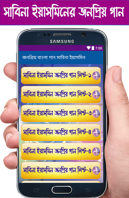 বাংলাদেশের জনপ্রিয় সঙ্গীত শিল্পী সাবিনা ইয়াসমিনের জনপ্রিয় বাছাই করা গান গুলো দিয়ে সাজানো হয়েছে এই অ্যাপ্লিকেশনটি। সাবিনা ইয়াসমিন বাংলাদেশের অনেক সুনামধন্য একজন শিল্পী। তার গান আমরা অনেক পছন্দ করি। তার গাওয়া জনপ্রিয় গান গুলো দিয়ে খুব সুন্দর করে সাজানো আছে এই অ্যাপসটিতে। অ্যাপ্লিকেশানটি মুলত সাবিনা ইয়াসমিনের গান ভিত্তিক অ্যাপ্লিকেশন, যার ভিতর অসংখ্য সাবিনা ইয়াসমিনের গান রয়েছে । সাবিনা ইয়াসমিনের বেশির ভাগ অনেক গান রোম্যান্টিক। আশা করি অ্যাপ্লিকেশনটি আপনাদের অনেক ভাল লাগবে।