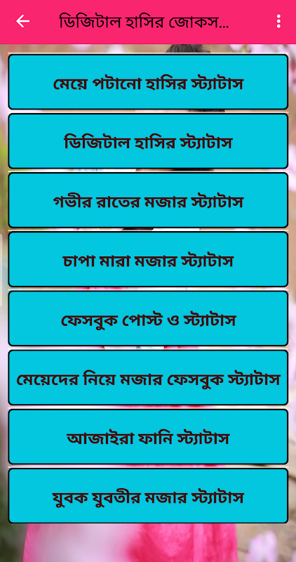 আপনাকে আর কষ্ট করে হাসির জোকস স্ট্যাটাস খুজতে হবে না এই অ্যাপসটিতে আছে অনেক অনেক হাসির জোকস স্ট্যাটাস।