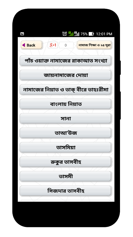 この中で、Namaj sikkha banglaアプリケーションでは、Doa qunut bangla、Tashahhud、Durood sharif Bangla、Bangla dowa、Dua masura、25の小さなスーラを提供しています。ここではすべてがとても簡単に整理されているため、誰でもこのアプリを使用して快適に過ごせます。