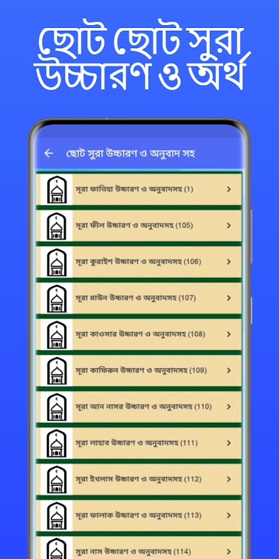 ** ছোট ছোট সুরা আরবী ও উচ্চারণ ও অনুবাদসহ।