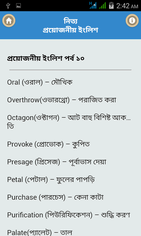 English is the international language and it has been using all over the world. Although it is important to bring sound command to communicate with others but you must know some common English. In this application we have included some English that you need for regular communication.