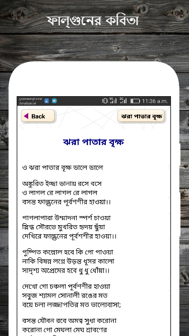 কবিতা আমাদের মনের কথা বলে । বাংলা কবিতার আমাদের এক উজ্জ্বল কবিতা সমগ্র রয়েছে । কবিতা ভাণ্ডার হল আমাদের এই কবিতা তথা ফাল্গুনের কবিতা অ্যাপটি।