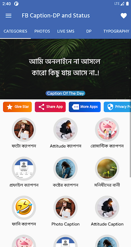 Facebookのバングラステータスは、今日の流行のスタイルです。文字通り、バングラのステータスは、ベンガルの人々がソーシャルメディアでつながっている友人や家族と自分の気持ち、考え、感情をより活発に共有するのに役立ちます。たくさんのことわざ、バングラステータス、バングラFacebookステータス、バングラFacebookキャプション、バングラ引用、バングラロマンティックステータス、バングラFacebook DP、バングラキャプション、バングラFacebookフォトキャプション、バングラSMS、心に響く物語など、人々が共有するのが大好きです。 。