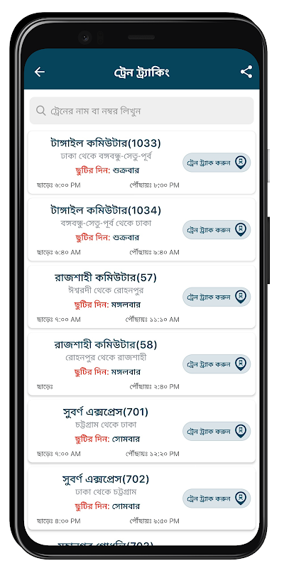৩。 সকল ট্রেন ট্রাকিং করুন কোন ঝামেলা ছাড়া ।