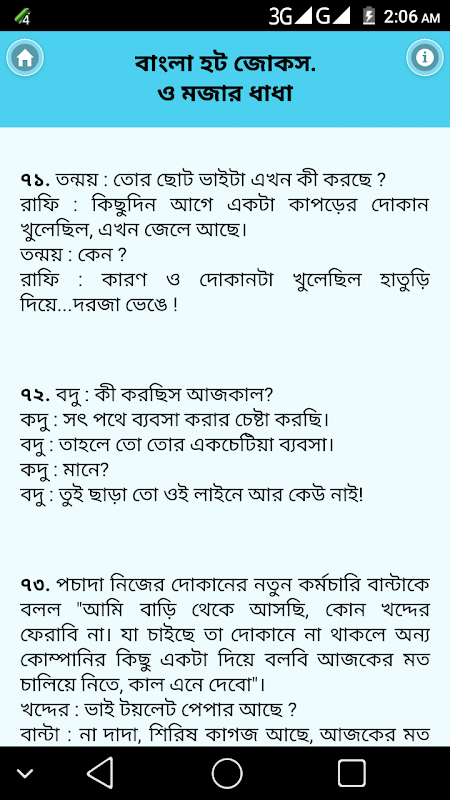 Bangla hasir jokes & Bangla mojar dhadha is an interesting app. Those who take interest in this kind of entertainment are welcomed to install this app.