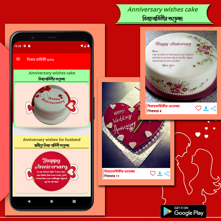 বিবাহ বার্ষিকী স্ট্যাটাস ছবি সহ বিবাহ বার্ষি SMS メッセージを受け取る