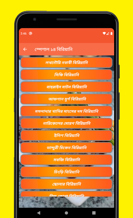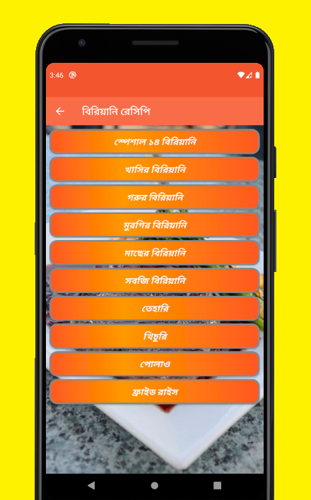 আমাদের এপসে রয়েছে - ইরানি বিরিয়ানি, কাচ্চি বিরিয়ানি, কাশ্মীরি বিরিয়ানি, নওয়াবী বিরিয়ানি, শাহজাহানী বিরিয়ানি, হায়দ্রাবাদী বিরিয়ানি, আখনি বিরিয়ানি, দম বিরিয়ানি, কোফতা বিরিয়ানি, স্মোকি বিরিয়ানি, আফগান মুর্গ বিরিয়ানি, কলকাতার বিরিয়ানি, ইলিশ বিরিয়ানি, প্রণ বিরিয়ানি, শ্রিম্প বিরিয়ানি সহ আরো অন্যান্য বিরিয়ানির আইটেম। তাছাড়া অসংখ্য খিচুড়ি রেসিপির সাথে রয়েছে গরুর তেহারী, খাসির তেহারী এবং সরিষার তেলে তেহারী রান্নার রেসিপি।