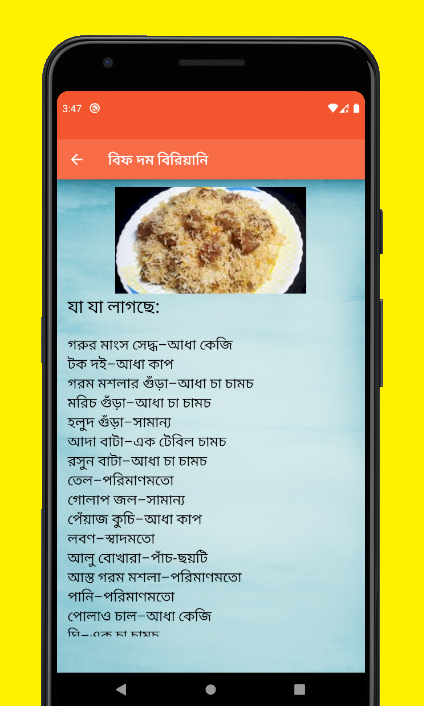 যদি আপনার বিরিয়ানী রান্না, তেহারী রান্না, খিচুড়ি রান্না, ফ্রাইড রাইস রান্না জানা না থাকে তবে আপনি আমাদের এপকে সহজে রান্না শিখার বই হিসেবে ব্যবহার করুন। আমাদের রান্নার এপ অনুসরণের মাধ্যমে ঘরে বসেই রেসটুরেন্টের রান্নার রেসিপি জানতে পারবেন।