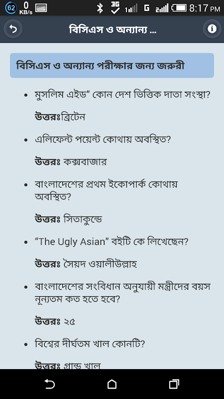 বিভিন্ন বিষয়ের মৌলিক জ্ঞান এর সংগ্রহ রয়েছে এই অ্যাপটিতে । বিসিএস পরীক্ষা, বিশ্ববিদ্যালয়ে ও মেডিকেল ভর্তি, ব্যাংক নিয়োগ পরীক্ষাসহ, বিভিন্ন সরকারি ও বেসরকারি চাকরির নিয়োগ ও যে কোন প্রতিযোগিতামূলক পরীক্ষার কাজে আসবে এই তথ্যগুলো ।এখনে সাধারণ জ্ঞান- আন্তর্জাতিক এর প্রয়োজনীয় সকল বিষয়ের অন্তর্ভুক্ত করা হয়েছে।