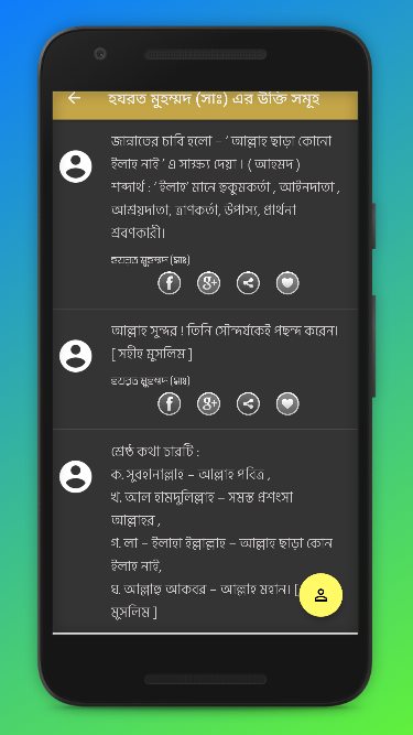 Mohanobir hadisは教育用イスラムアプリケーションです。私たちはすべてのイスラム教徒が正しい方法で彼らのライフスタイルを導くのを助ける預言者ムハンマド(pbuh)のこのアプリ引用で提供します。このアプリでは、バングライスラムの引用符としてrasulullah(pbuh)のインスピレーションとディレクションバングラの引用符がたくさん見つかります。 mohanobir jiboni、monishider bani、感動的な引用符、monishider jiboni、rasuler baniのような最も信頼できる情報源の中で、私たちはあなたのための最良のリソースとして最良の引用符を集めました。 Nobir baniは、私たち全員にとっての方向性の指針です。一人ひとりのイスラム教徒はtheriの生活のための適切なガイドラインのためにこのアプリケーションをダウンロードする必要があります。