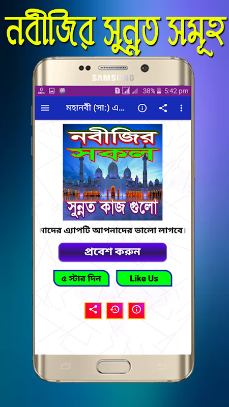 রাসূলুল্লাহ (স:) এর সকল সুন্নত কাজ গুলো নিয়ে আমাদের এ্যাপটি তৈরি করা হয়েছে। রাসূলুল্লাহ (সঃ) যে কাজ যেভাবে করেছেন এবং যেভাবে ছেড়ে দিয়েছেন সেই কাজকেই সেভাবে করা এবং সেভাবে ছেড়ে দেয়ার নামই হলো সুন্নাত।এক কথায় মহানবী (সাঃ) জীবনীতে যে সকল কাজ করেছেন সেই সকল কাজ অনুসরন করাকেই সুন্নত বলে।আমাদের প্রিয় নবীর সুন্নাত পালন করা সকল মুসলমানদের অবশ্যই কর্তব্য।আমাদের এ্যাপটির মাধ্যমে আপনারা নবীজির সুন্নত কাজগুলো সম্পর্কে বিস্তারিত জানতে পারবেন।