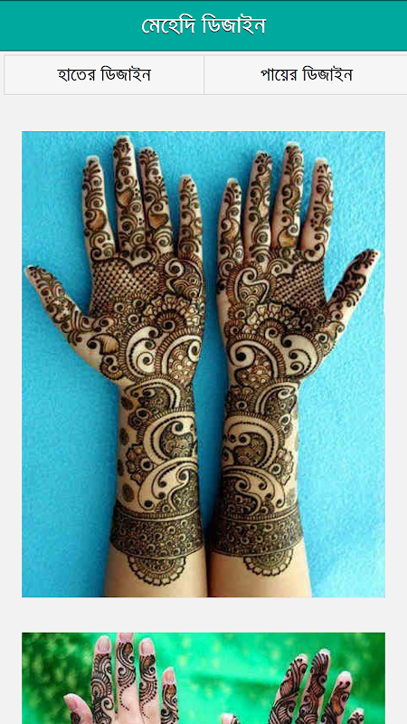 এপটিতে রয়েছে নজরকারা সব হাতের ও পায়ের জন্য বিয়ে, গায়ে হলুদ, জন্মদিন, পার্টি সহ যাবতীয় অনুষ্ঠানের জন্য মেহেদির ডিজাইন।