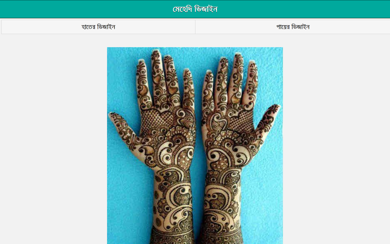যারা নজরকারা সব মেহেদি ডিজাইন খুজছেন তাদের জন্য এই মেহেদি ডিজাইন এপ।