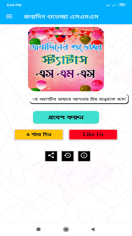 アプリには、感情的なベンガル語の誕生日の願いSMSとステータス、および英語の単語の選択ハッピーバースデー願いステータスとSMSが含まれています。