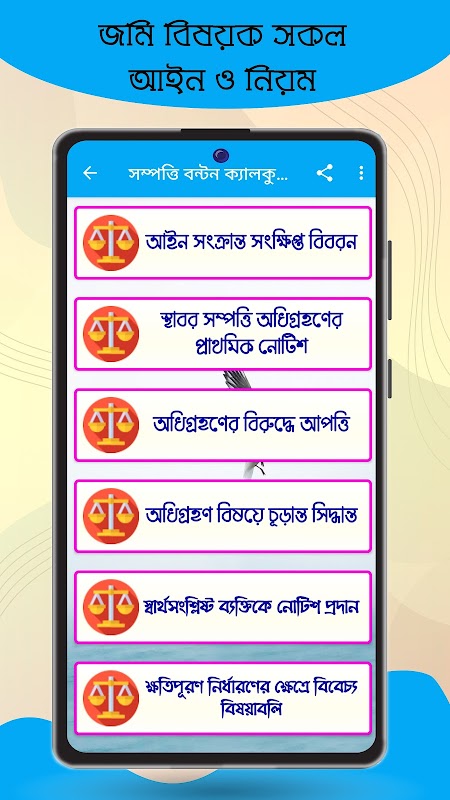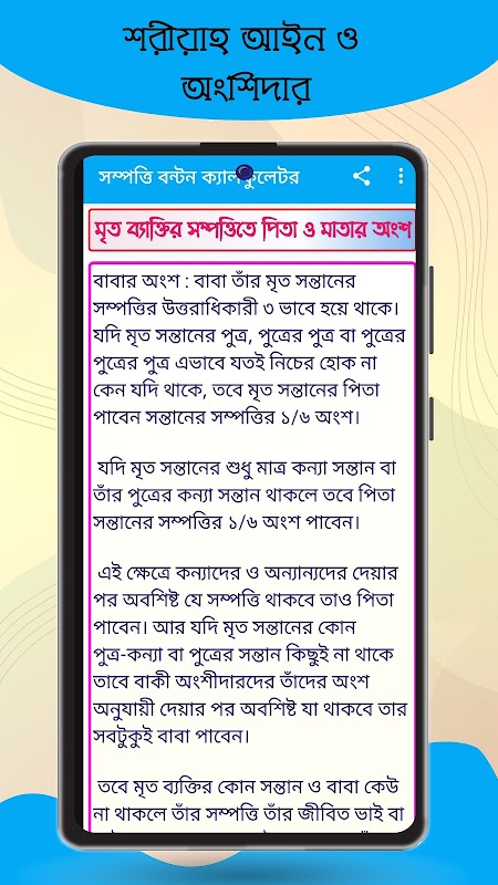 সম্পত্তি বন্টন ক্যালকুলেটরে উত্তরাধিকার সংক্রান্ত সম্পত্তি বন্টনের হিসাব নিকাশ সহ সকল সম্পত্তি বা জমি জমা সংক্রান্ত সকল বিদ্যমান আইন-কানুন দেওয়া আছে।