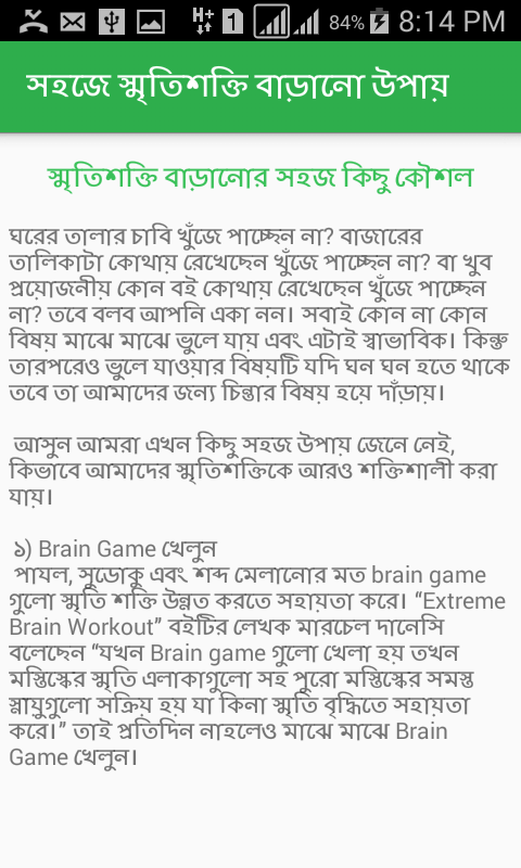 How to keep good to your brain , this topics about our brain valo rakhar upay . Now time many man lose their memory . This is a most problem . But brain is very sensitive if you not care it , it is damage or many problem you face . This prevent your health . This apps is related your brain health . You find this app How to keep good our brain , how to keep good health, health tips bangla . Bangla health tips . health tips , Brain health , how to lose brain memory . Brain Health is very important every man . so take care it . This apps your find how to increase your brain memory . Brain problem, Brain memory problem . If you like our apps plz give rating and any query about this apps plz comment .