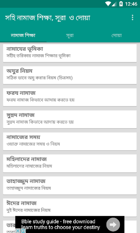 This apps will provide all about Namaj sikkha. This "Namaj Shikkha Bangla" book, you will get step by step information about how to pray your prayer, some small "sura" and some "doya". Here you will get both Bangla and English version.