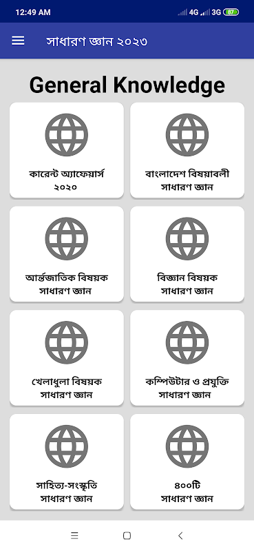 一般知識2023アプリは、必要な情報を知ることができる知育アプリです。知識はこのアプリを通して話されるべきです。一般知識世界とバングラデシュについて多くのことを学び、知ることができます。