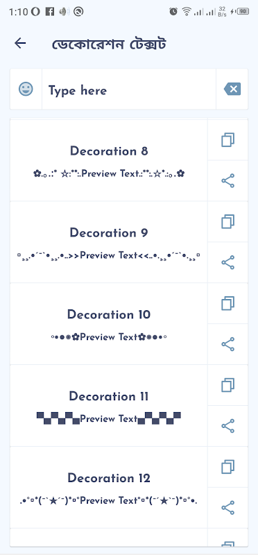 স্টাইলিশ ফ্রন্ট, ডেকোরেশন টেক্সট, টেক্সট রিপেক্টর, ইমুজি থেকে টেক্সট, বাংলা টাইপোগ্রাফি, ছবিতে বাংলা লিখন, টেক্সট আর্ট, স্টাইলিশ বাংলা কীর্বোড, স্টাইলিশ ফন্ট, স্টাইলিশ নাম ডিজাইন, টেক্সট অন ফটো, স্টাইলিশ নাম্বার ডিজাইন ইত্যাদি।