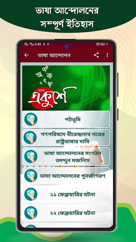 独立の歴史アプリは、バングラデシュの独立と解放戦争について知りたいすべてのベンガル語話者のためのものです。また、独立の完全な歴史アプリには、歴史とは別に解放戦争SMSや詩も含まれています。独立という言葉が私たちにどのようにして来たのか、誰がバングラデシュの独立を宣言したのか、バングラデシュ独立戦争の歴史などを知っていますか。ここで、解放戦争と独立に関するすべての質問に対する答えが得られます。