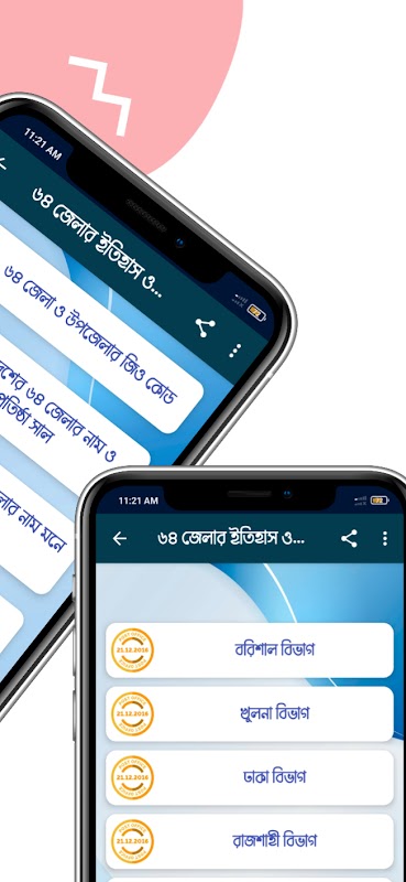 バングラデシュの歴史 64 地区は、64 地区の完全な歴史、名所、食べ物、地図を表すユニークなアプリです。また、すべての有名な訪問場所、彼らの素晴らしい食べ物、そして過去の英雄的な歴史が含まれていました.