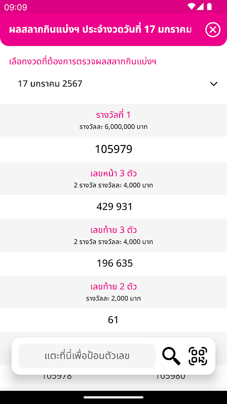 ◆ ตรวจผลสลากฯ ตรวจหวยรัฐบาลฟรีใส่ตัวเลข ได้เอง รวดเร็ว ทันใจ