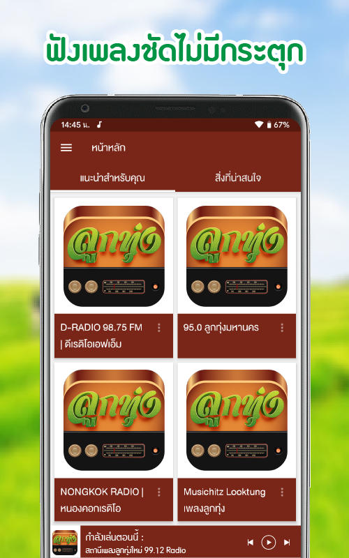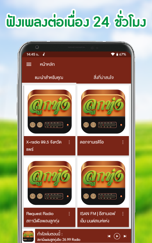 🎶アプリケーション「24 時間オンラインでルクトゥンの曲を聴く」には、最も人気のあるルクトゥンの曲が含まれています。最新のカントリー ミュージックカントリーミュージックをオンラインで聴きたい人向け。新旧両方の曲あり、無料の音楽アップデート。モバイルアプリケーションまたはタブレットシステム Android を介して 1 日 24 時間オンラインで音楽を無料で聴くことができます今週の人気カントリー ソングのコレクション更新して、オンライン ラジオ局のチャートにヒットした曲を聴きましょう。さまざまなアーティストやジャンルを含むルクトゥングの歌。両方のタイのルークトゥンの歌生涯ルクタン人生のためのルクトゥングの歌、ルクトゥン モーラム、古いルクトゥンの歌聞いて幸せになる野原や田舎から聞こえる音楽の音から、音楽を通してタイらしさのアクセントを伝えます。それがタイ中のファンから絶大な支持を得ている。誰もが最も人気のあるカントリーソングを聴けるようにAndroid デバイス経由で無料