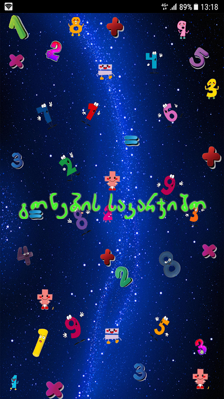 * აპლიკაციაში თავმოყრილია სხვადასხვა სახალისო და სააზროვნო ამოცანები, ამ ეტპისთვის აპლიკაცია შედგება მიმატებისგან და ნამრავლისნა, გგონიათ ეგ მარტივია ? სულაც არა! აბა სცადე და k, თქვენ შეძლებთ შედეგებით შეეჯიბროთ თქვენს მეგობრებს.