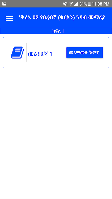 አፕልኬሽኑ በቅድሚያ የአማርኛ ፊደላት እንቅስቃሴን በ ክፍል 1 ያስተምራል።