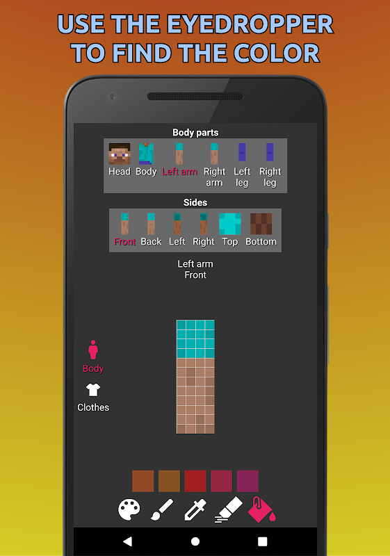 🔥 あなたの肌をユニークにするには、ブラシ、スポイト、または塗りつぶしツールを使用してください!あなたは今ゲームで使用できる排他的かつ定性的にトレースされたスキン!