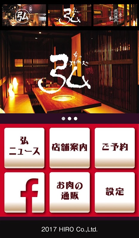 『京の焼肉処 弘』『京やきにく 弘』『弘商店』それぞれに違った個性の店舗を京都で運営する老舗焼肉店、株式会社弘の公式アプリです。
