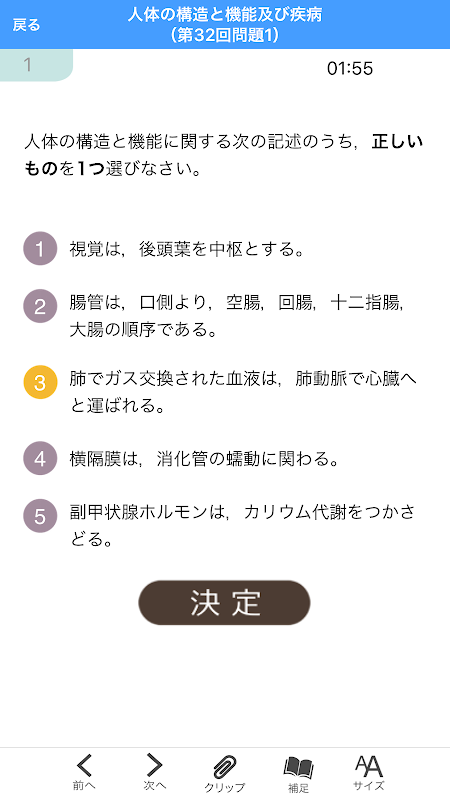 科目を選択すると、試験の傾向を完全分析したジャンルごとに問題が出題されます。問題の出題方法も、ランダム出題、クリップした問題だけの出題など、アプリならではの出題が可能です。サクサクと問題を解いていくことで、数多くの問題をこなすことができます!